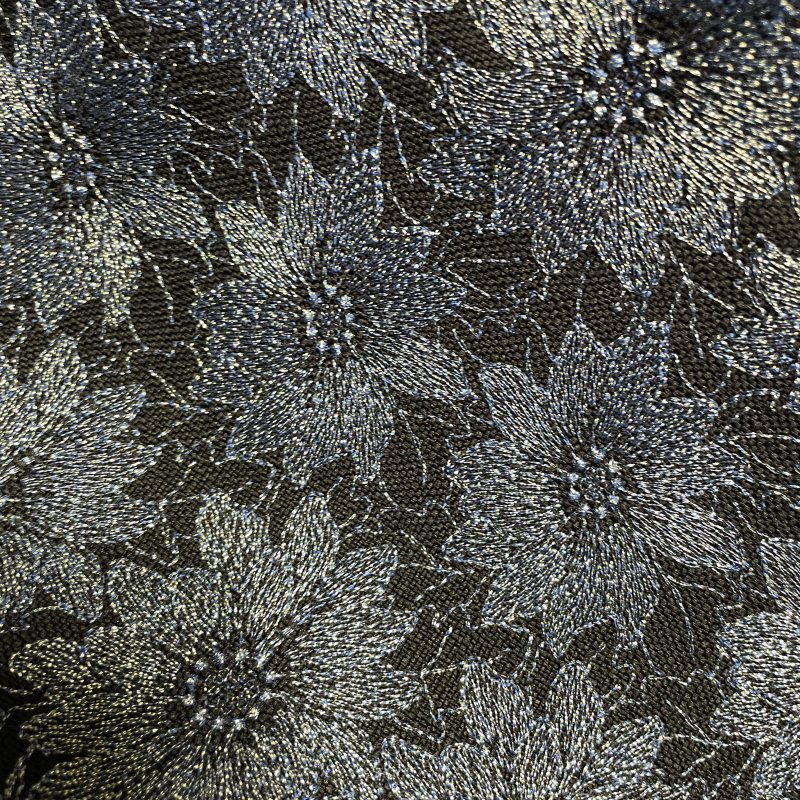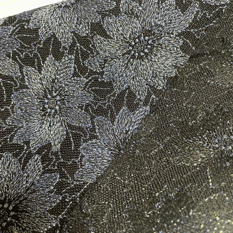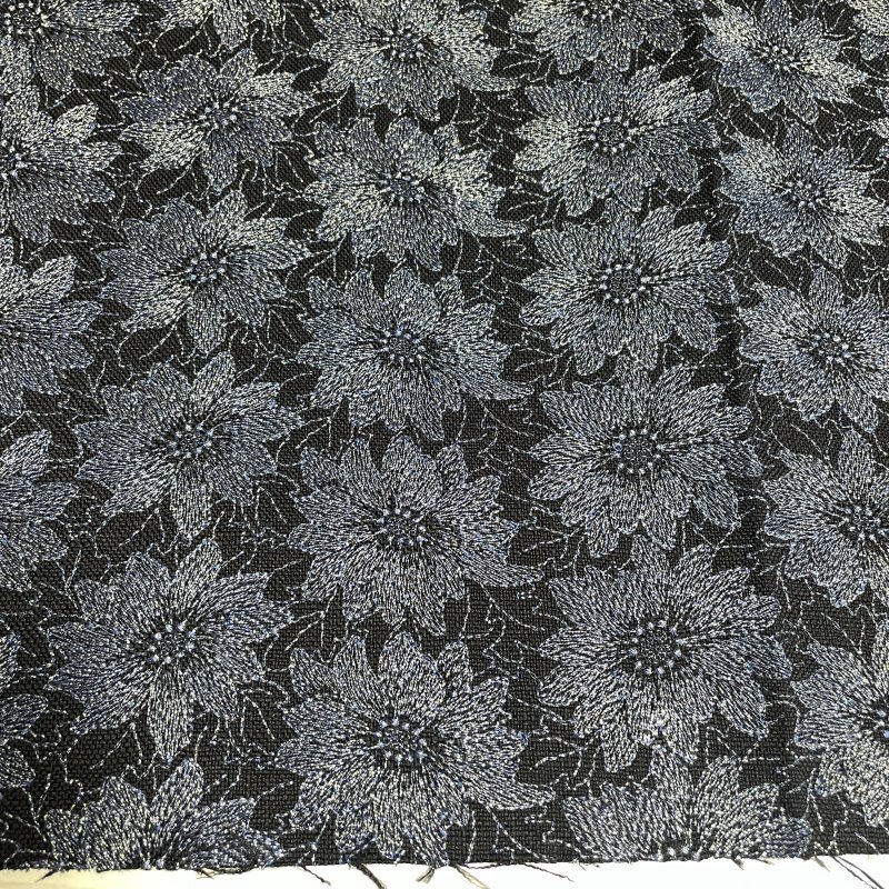 【日本製】刺繍レース生地 約25cm×約100cm 花柄刺繍レース ネイビーラメ [85140 紺]
