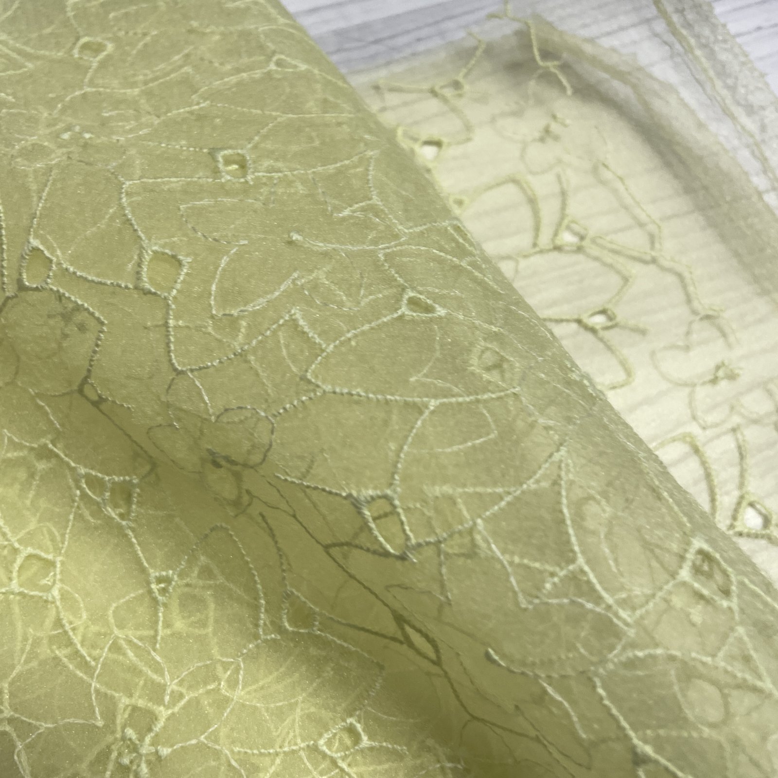 【日本製】刺繍レース生地 約24cm×約100cm イエローのダリア風花柄刺繍レース [71408 黄色]