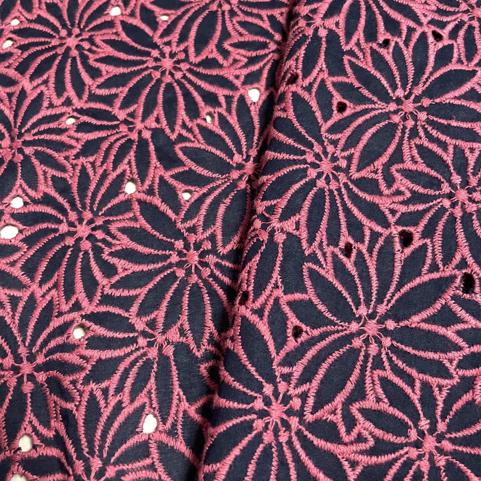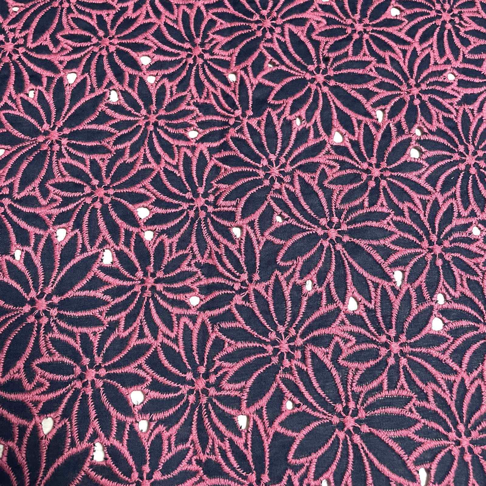 【日本製】刺繍レース生地 約25cm×約45cm×2色 花柄刺繍レース紺ピンクとベージュ [72128 ネイビーピンク、茶色]