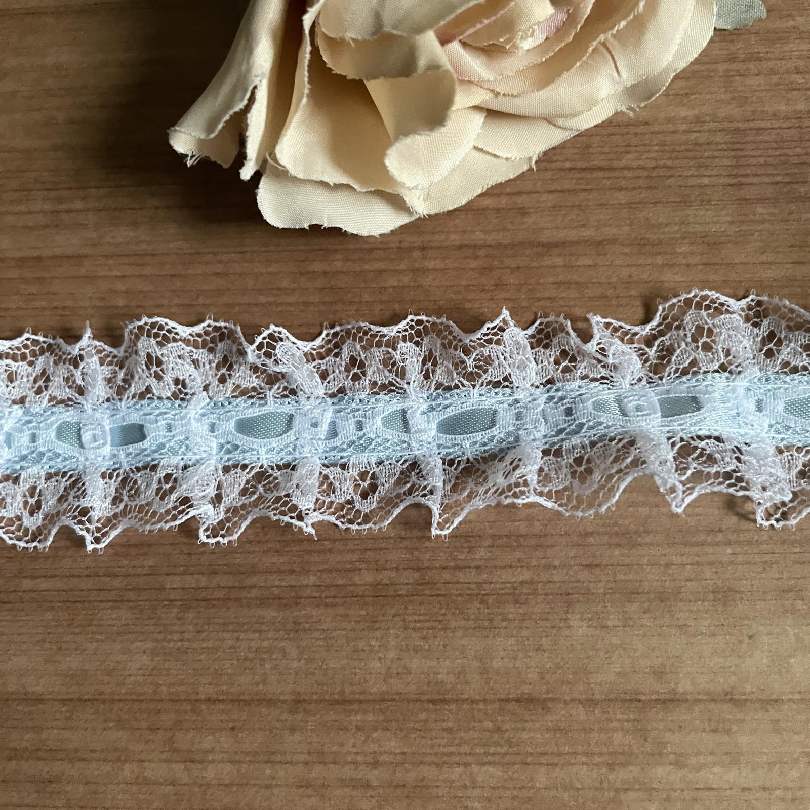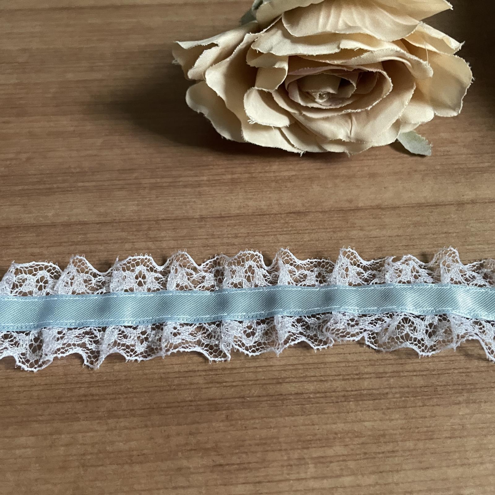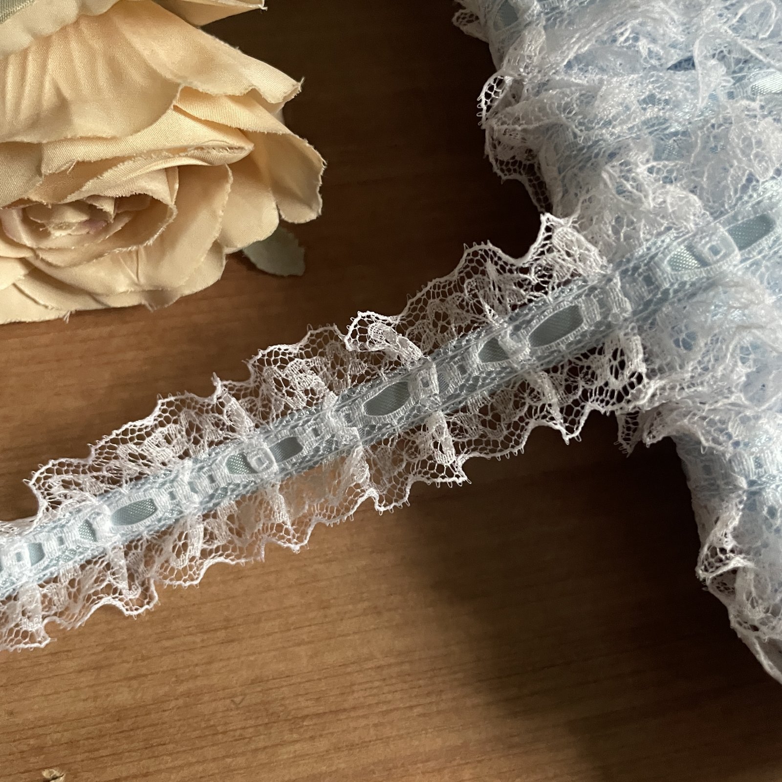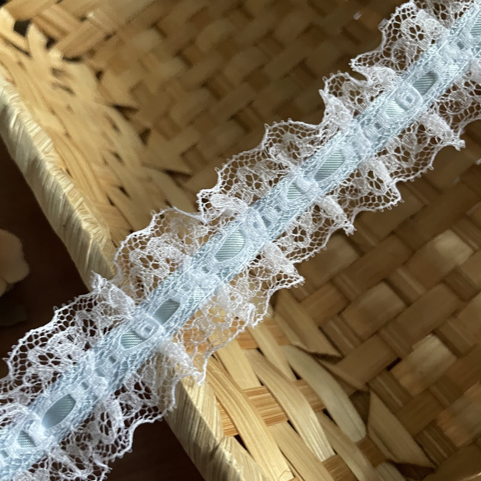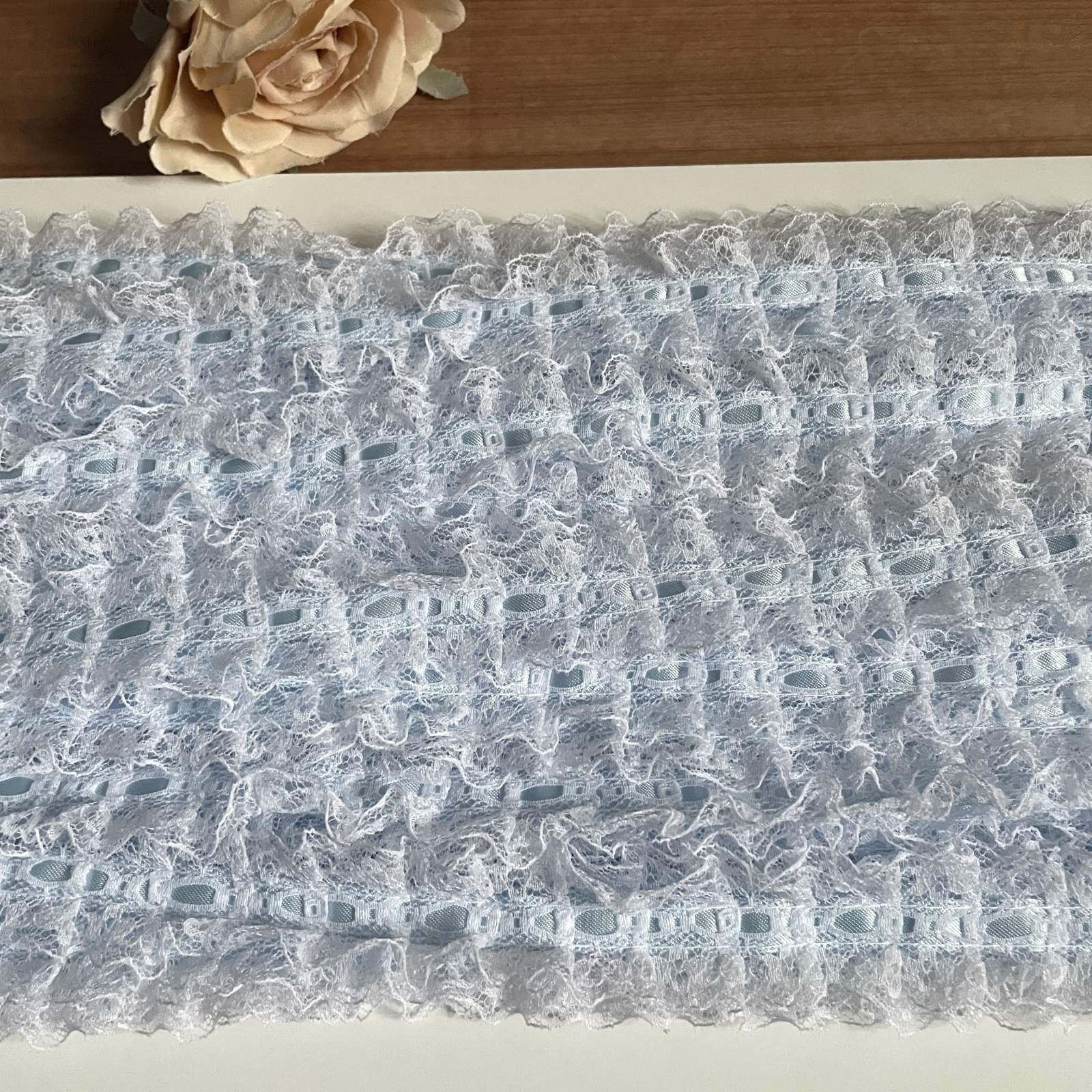 日本製フリルラッセルレース 淡いブルー 幅2.6cmリボン通し風 3m [512432 水色35]