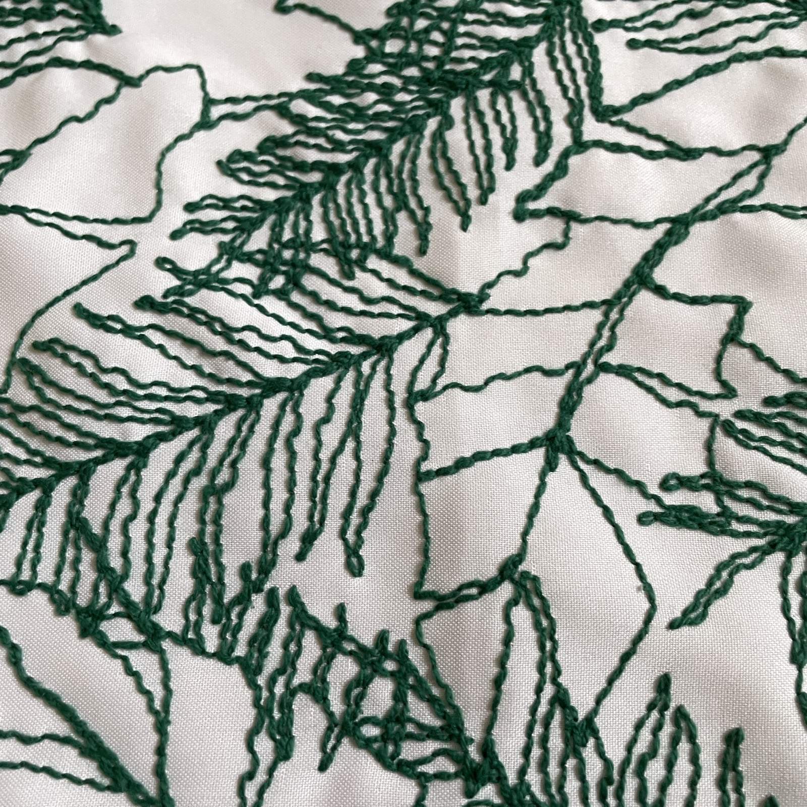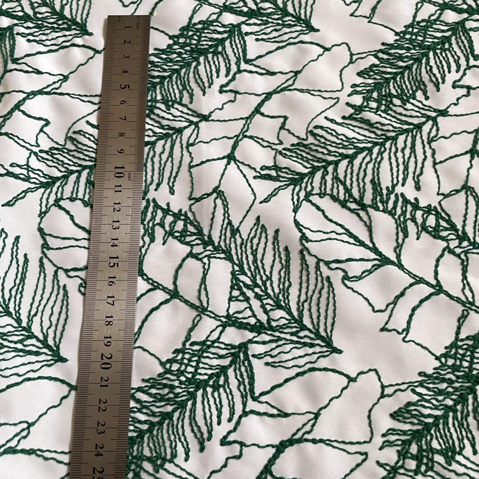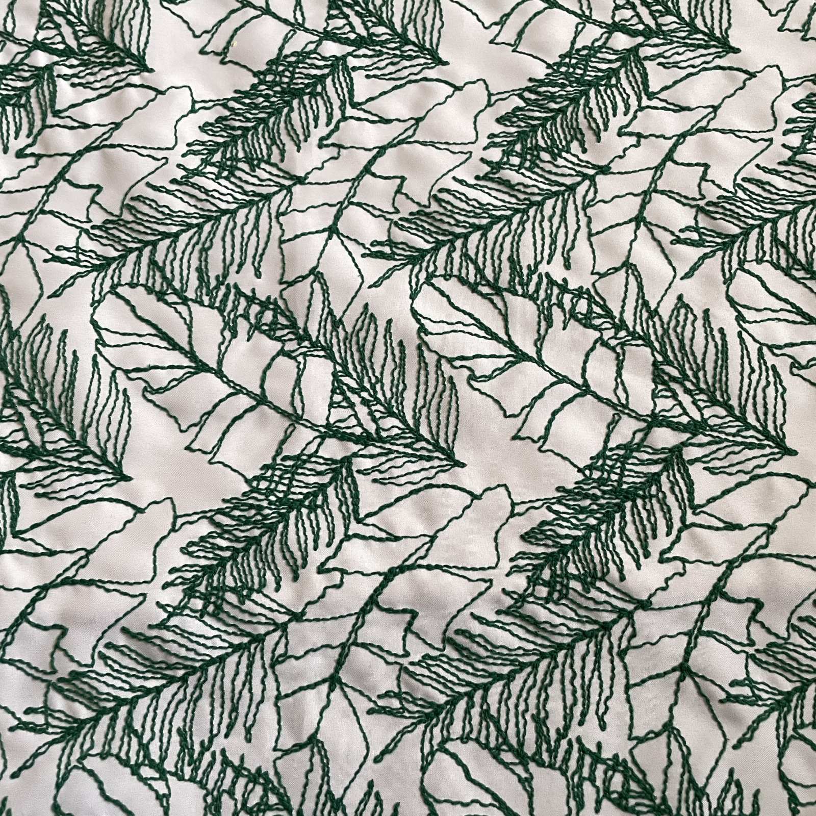 【日本製】刺繍レース生地 約40cm×約130cm クジャクの羽みたいな葉っぱ柄刺繍レース ブラックみどり [90185黒]