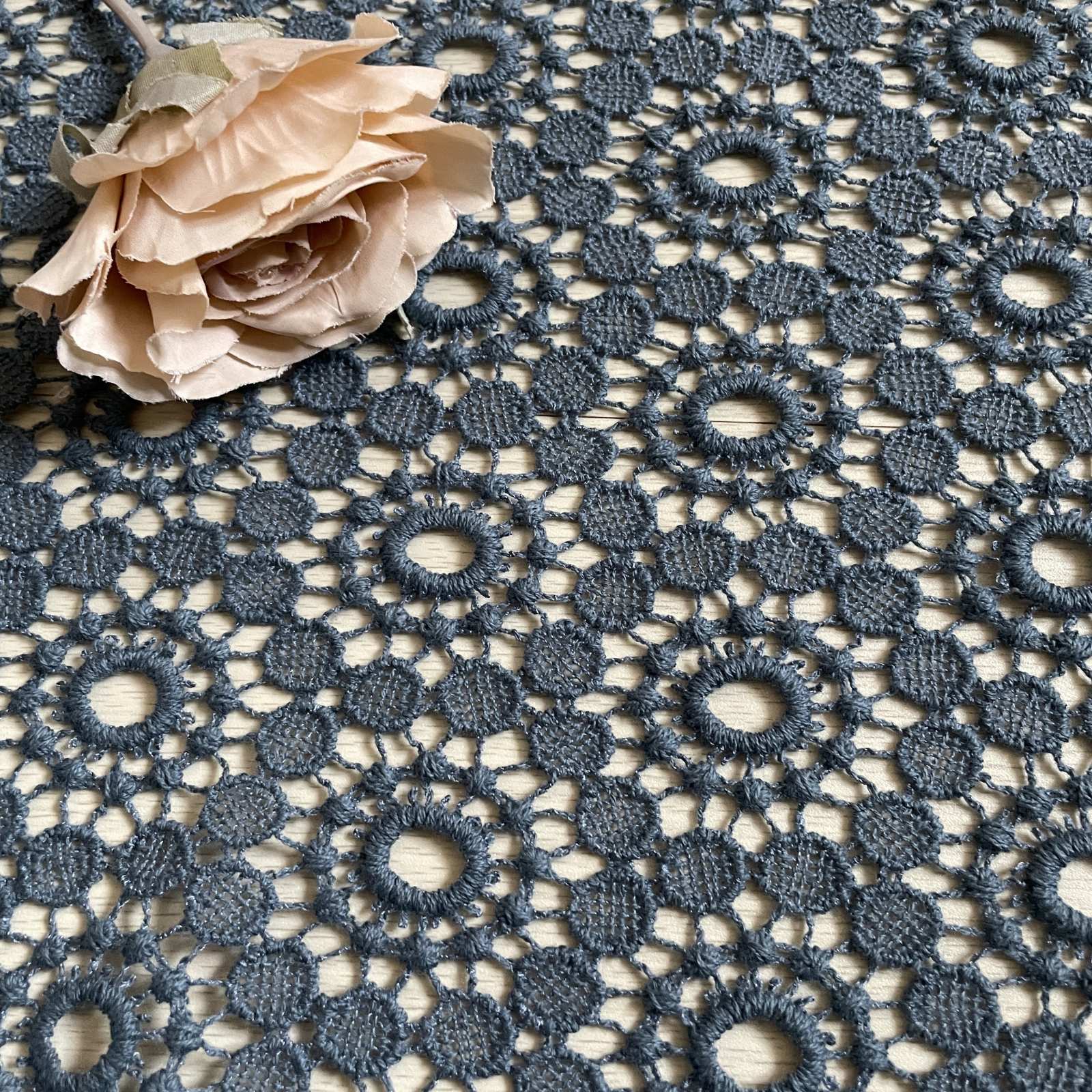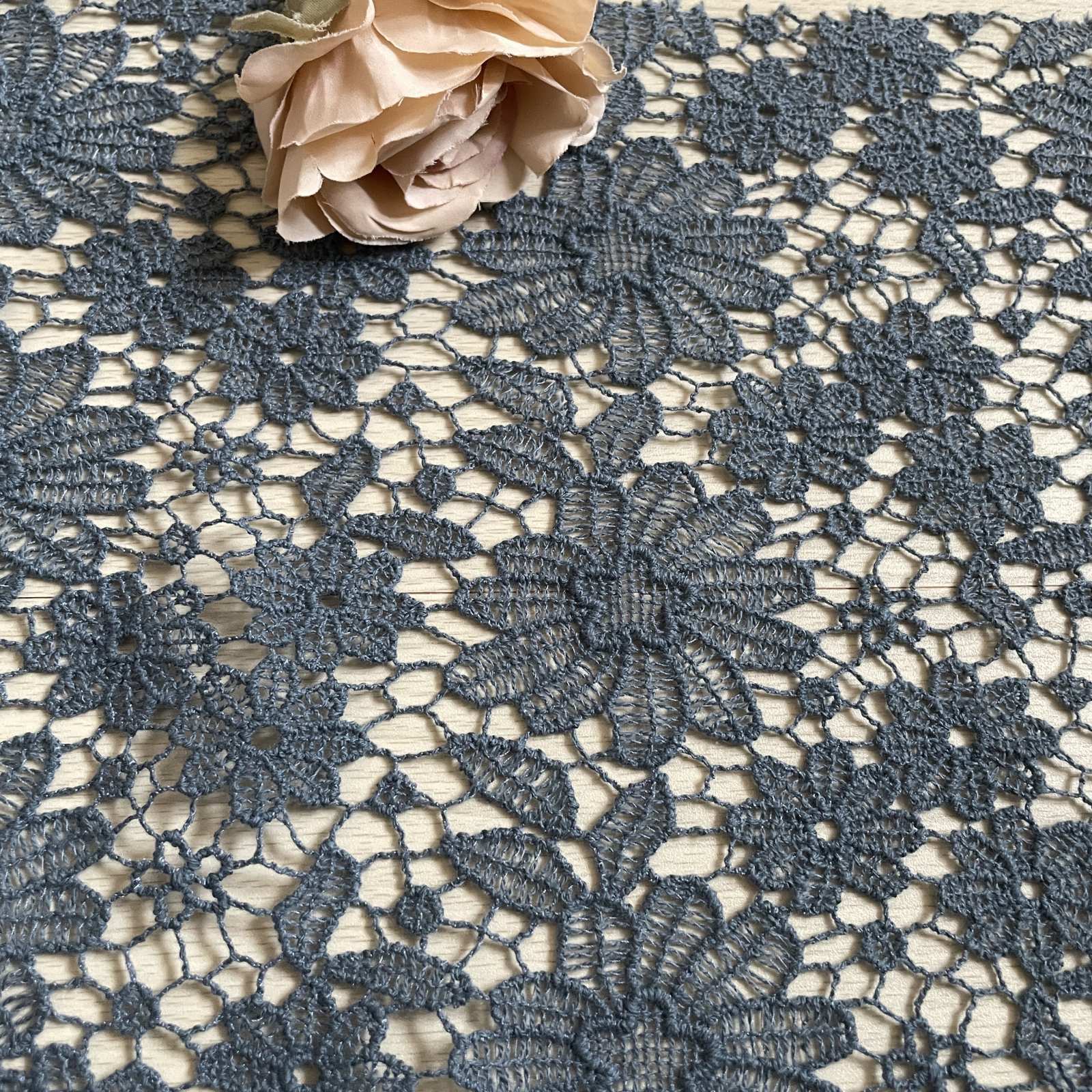 刺繍レース生地 約30cm×約40cm 3枚組 大胆な花柄刺繍レース ネイビー [71764 紺色]