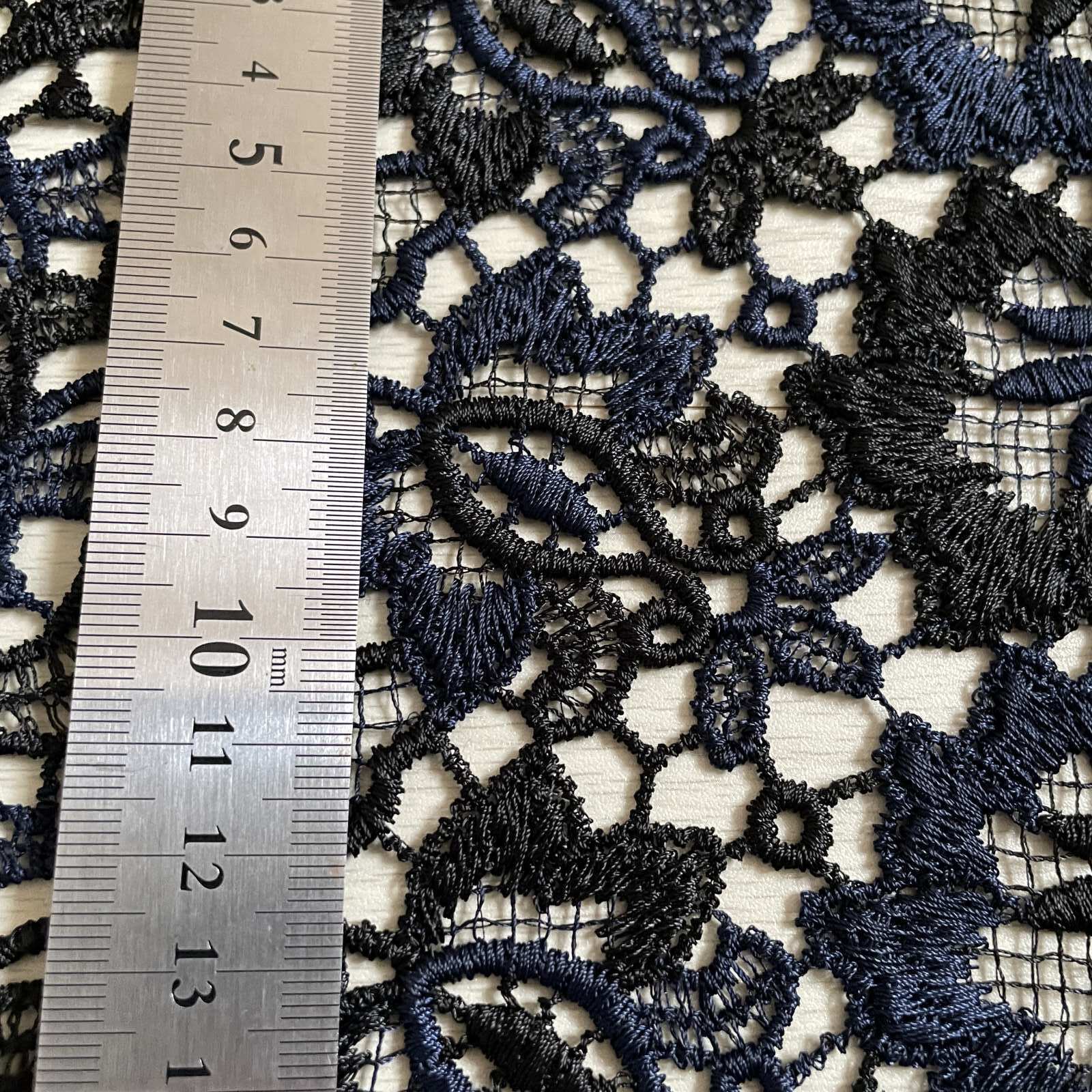 【日本製】刺繍レース生地 約30cm×約40cm ケミカルレース 花柄 ネイビー [72245 紺色]