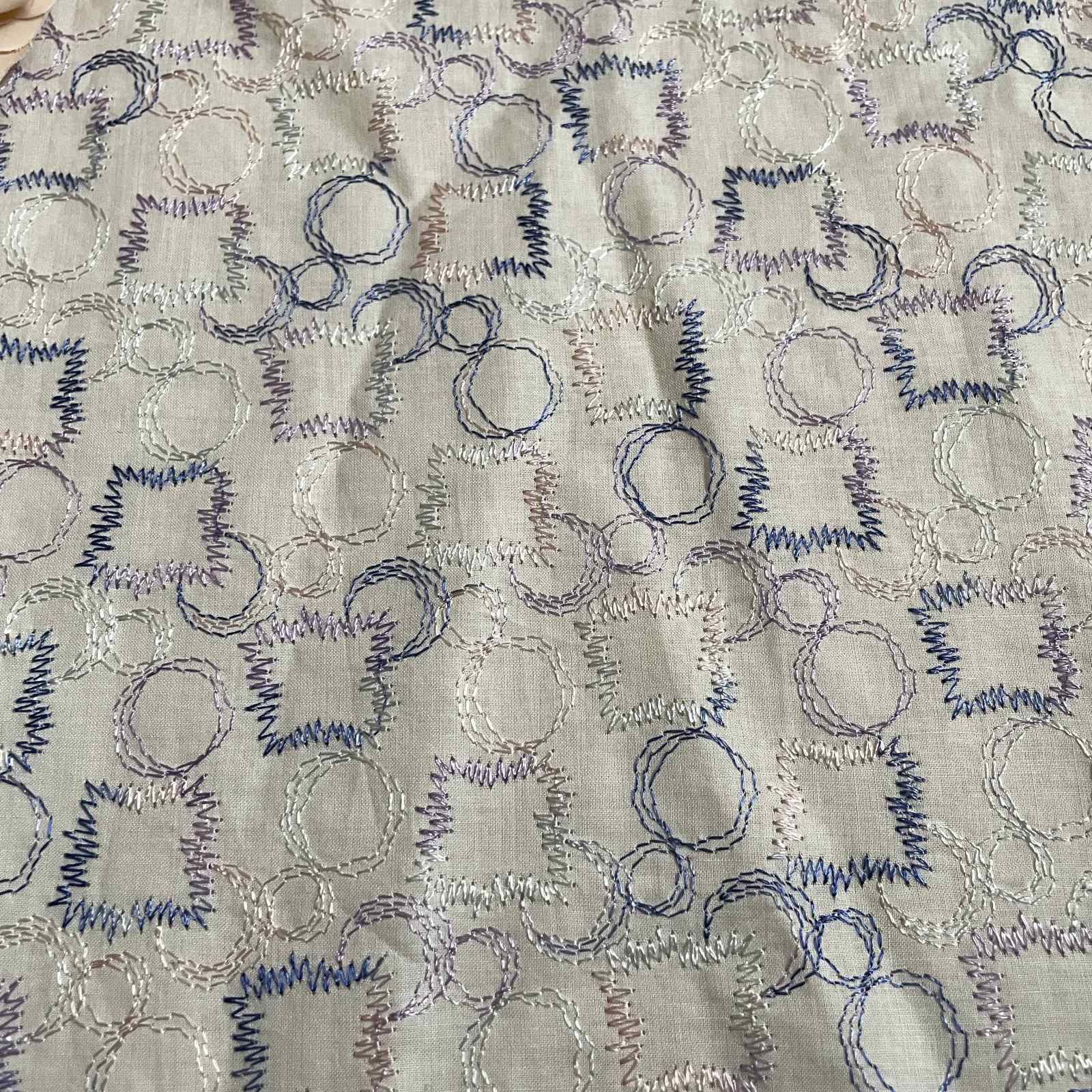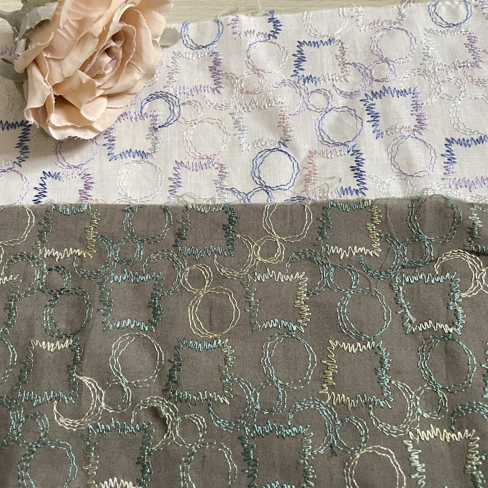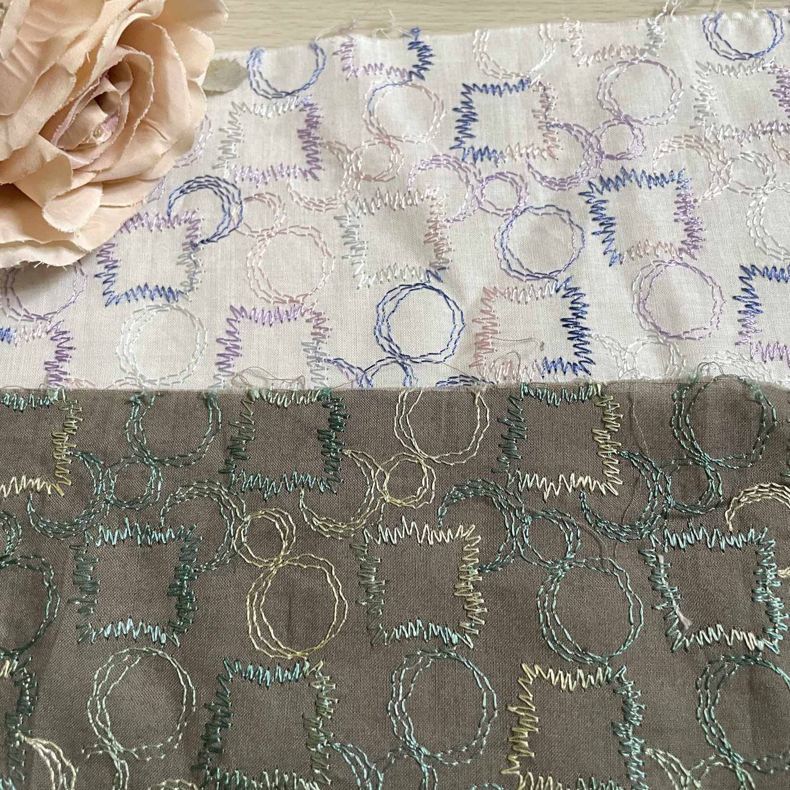 【日本製】刺繍レース生地 約25cm×約85cm×2色 白と茶色 〇と◇ [70076 ホワイト系ブラウン系]