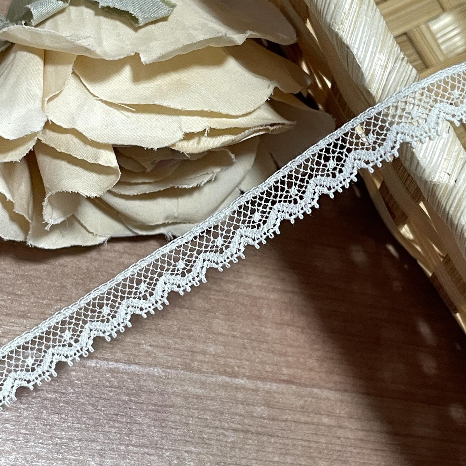 フランス製綿リバーレース アイボリー 幅0.9cm極細ドット柄1m