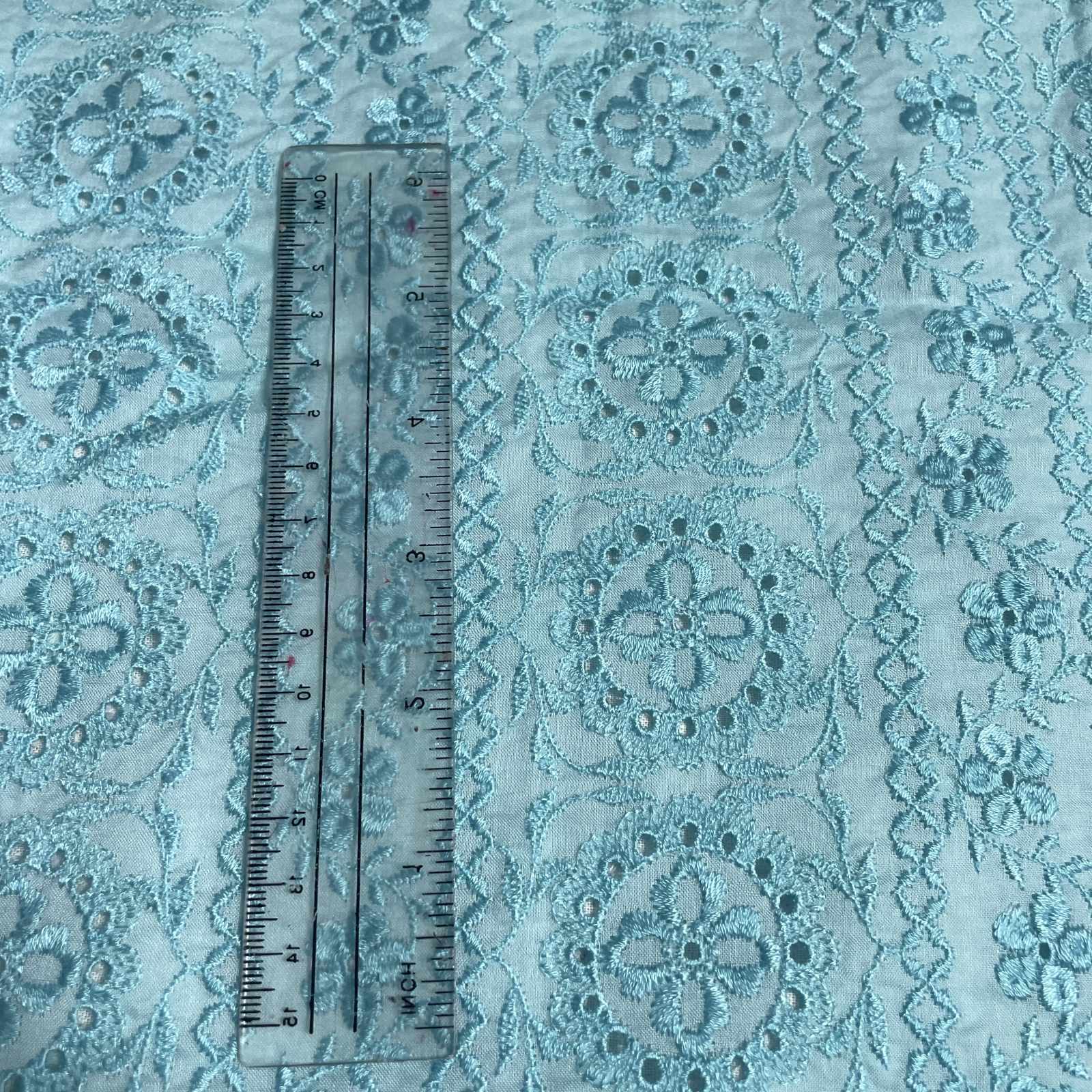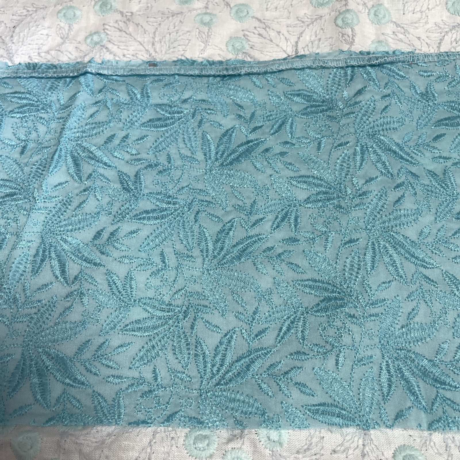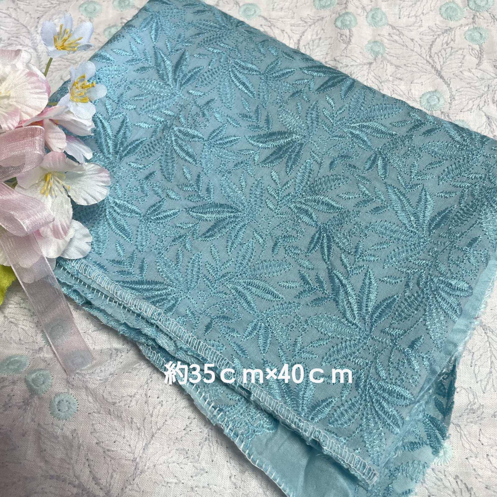 【日本製】刺繍レース生地 計165cm 4枚組 きれいな刺繍レース ターコイズブルー [青刺繍レースセット1]