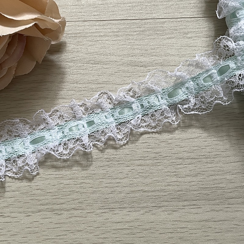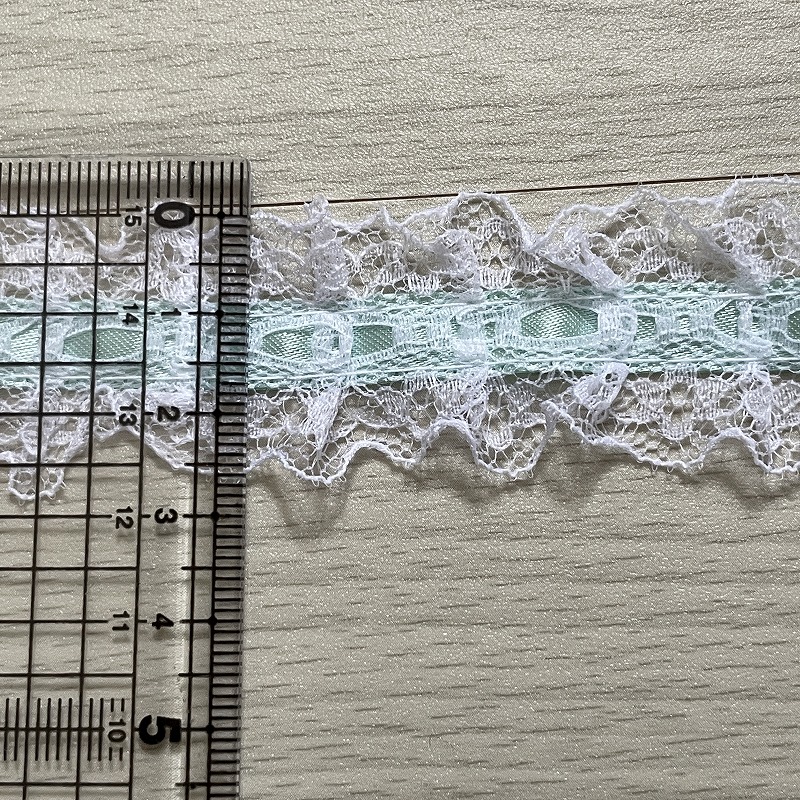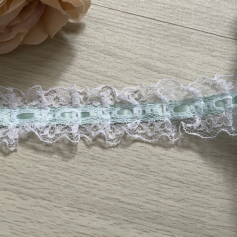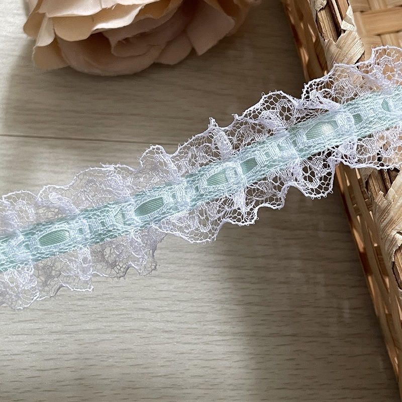 日本製ラッセルフリルレース ミントグリーン 幅2.6cmリボン通し風 3m