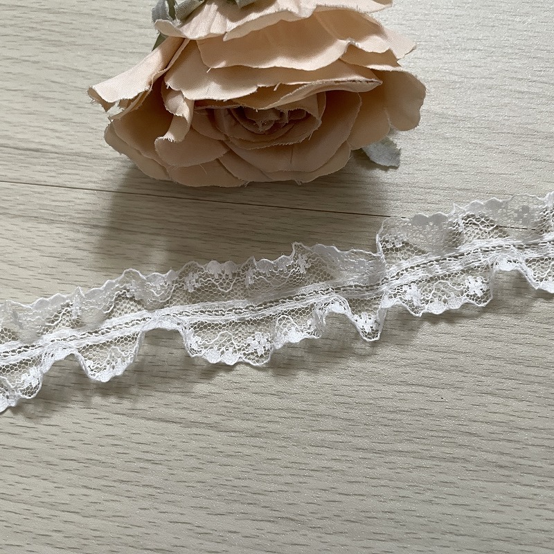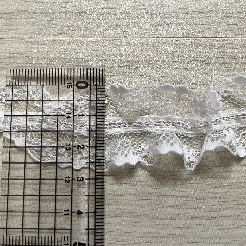 【日本製】ラッセルフリルレース オフホワイト 幅3.8cm薔薇柄 5m巻 衣装に [24-551462 オフ白]