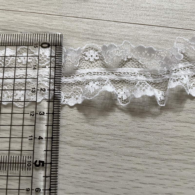 【日本製】2段フリルが可愛いラッセルフリルレース ホワイトラメ 幅6.8cm小花柄 5m巻 衣装に [5250051 白金]