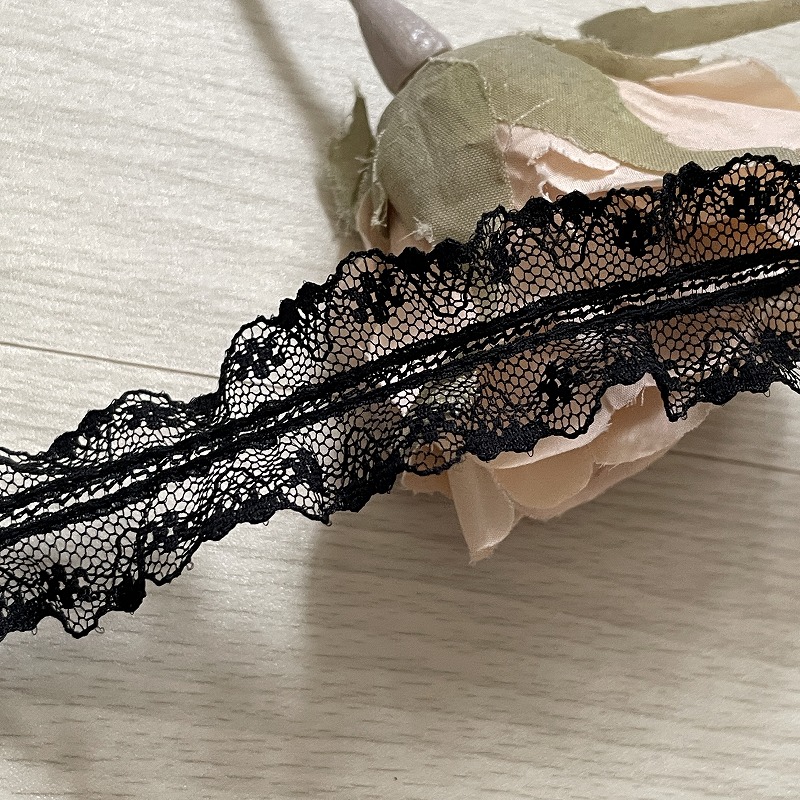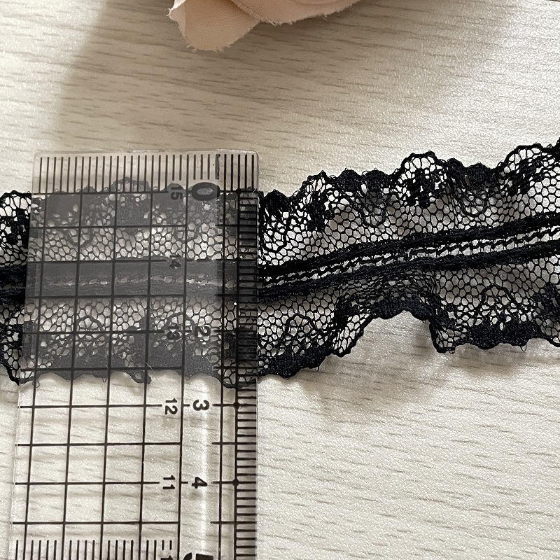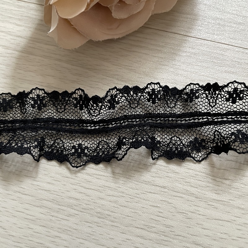 【日本製】両山ラッセルフリルレース ブラック 幅2.7cm小花柄 衣装に