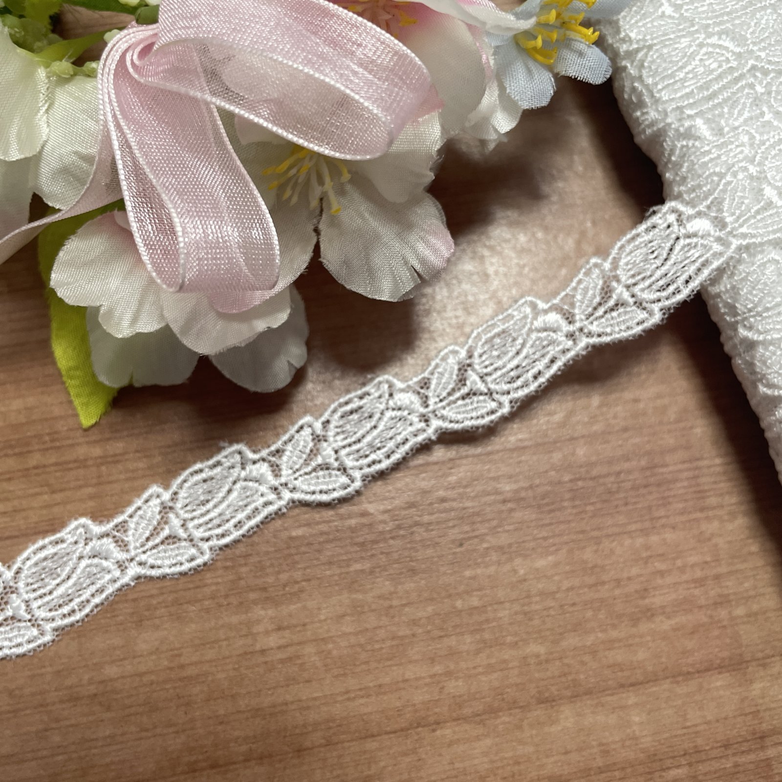 【高品質な日本製】チュールレース オフホワイト 幅1.4cm 3m巻 スズラン柄 [191 オフ白(3m)]