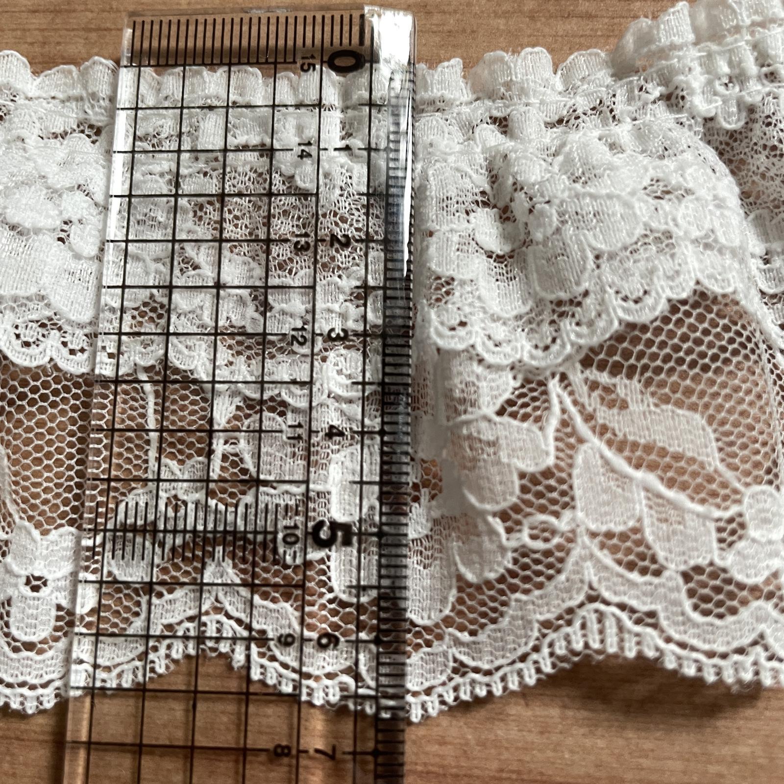 【日本製】ラッセルフリルレース オフホワイト 幅3.8cm薔薇柄 5m巻 衣装に [24-551462 オフ白]