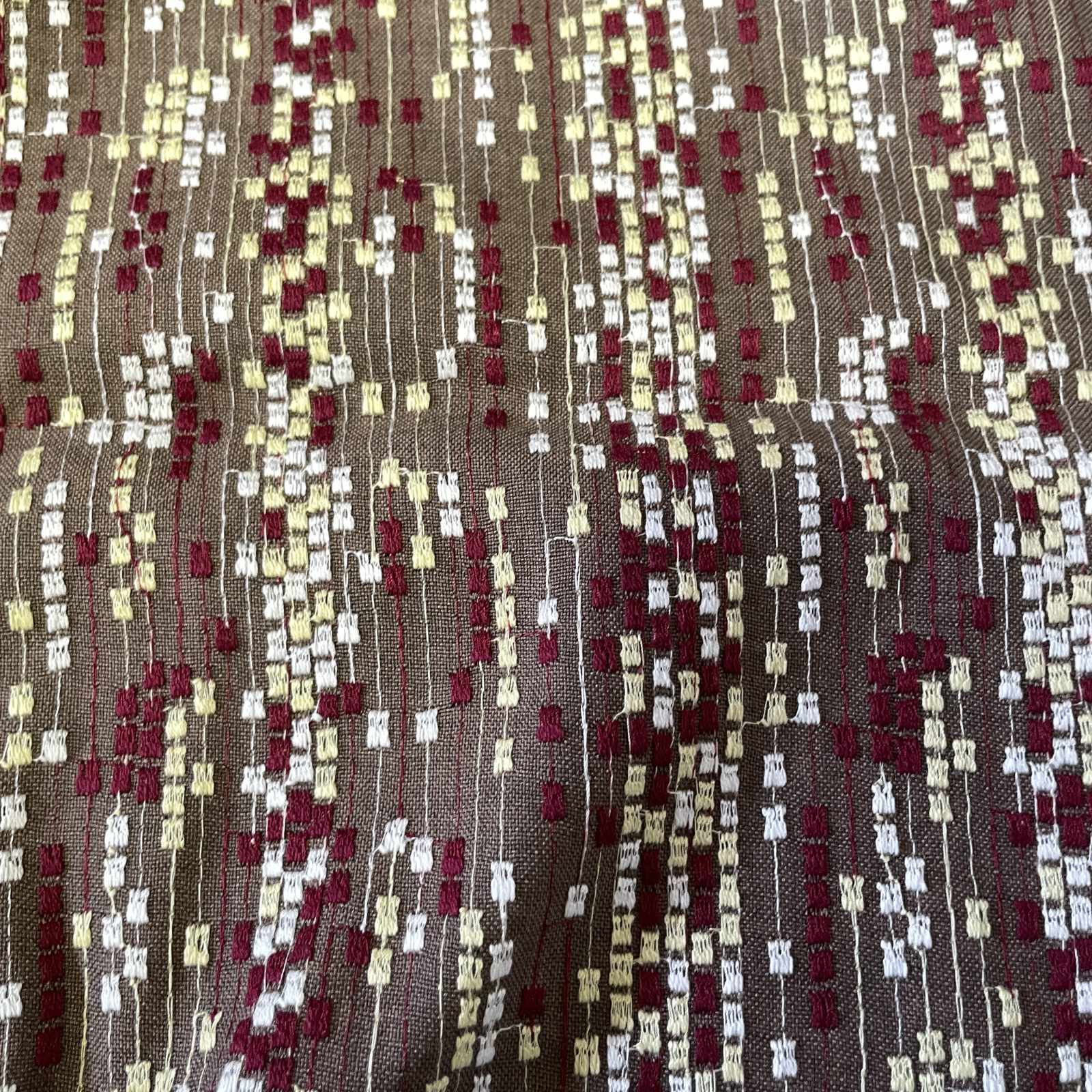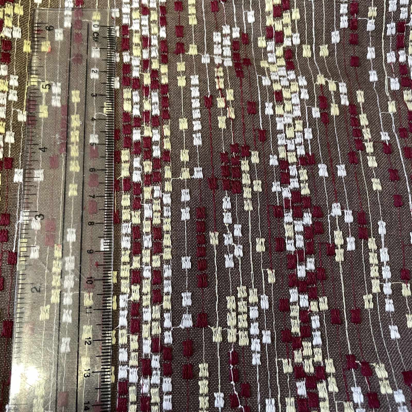 【日本製】刺繍レース生地 約35cm×約1.3m カラフルドット柄ブラウン刺繍生地 [HA-茶色1]