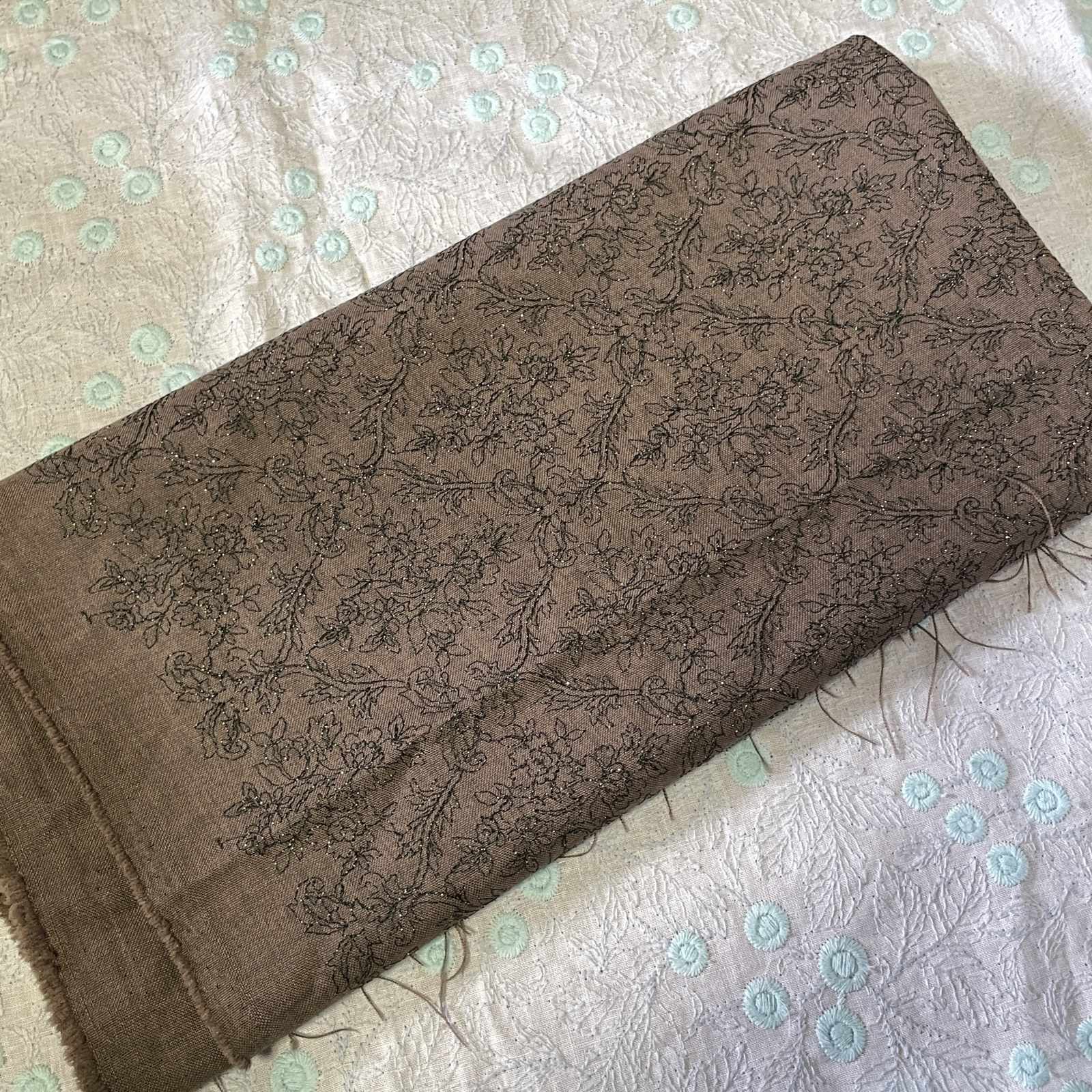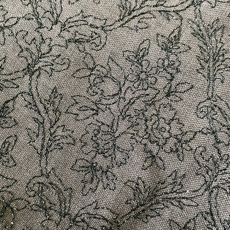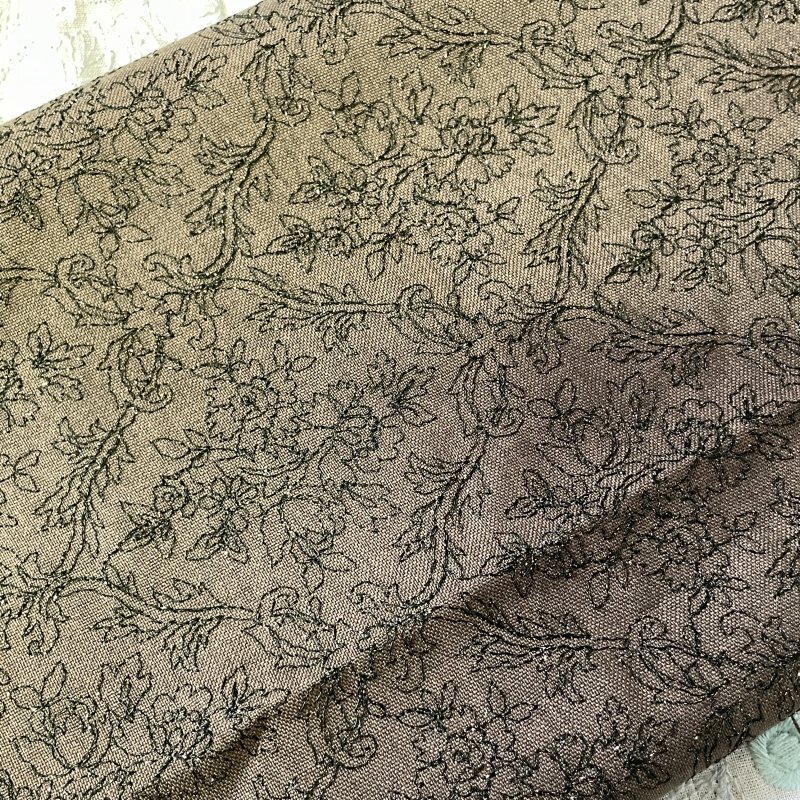 刺繍レース生地 約50cm×約1.2cm 金ラメ入り、繊細な花柄刺しゅう ブラウン [HA-茶色2]