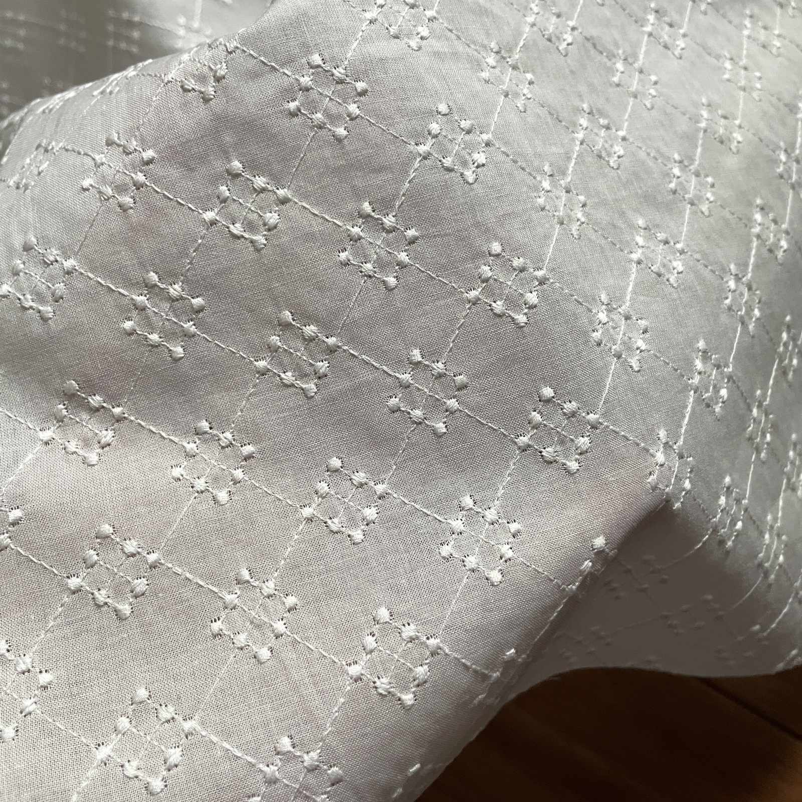 職人の丁寧な技術が光るこの生地は、エレガントな洋服からインテリア雑貨まで幅広くお使いいただけます。柔らかな白色がどんなシーンにも映える、こだわりの一枚です。