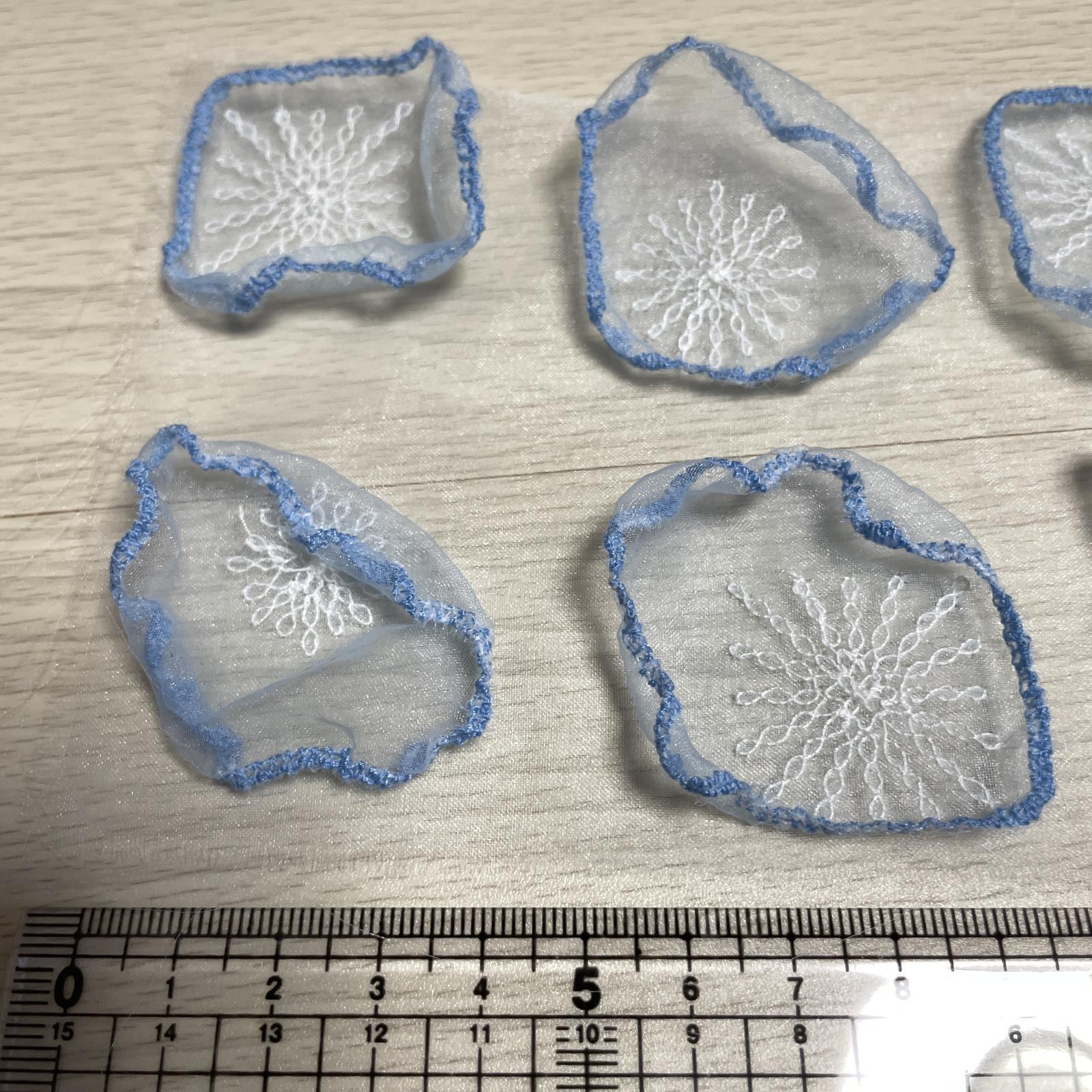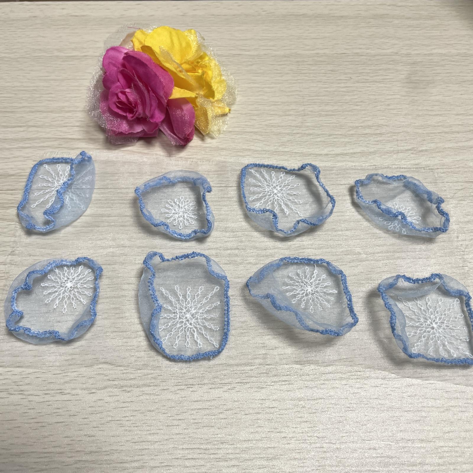 - > 8枚セット!幅4cmふわふわお花のモチーフ ブルー