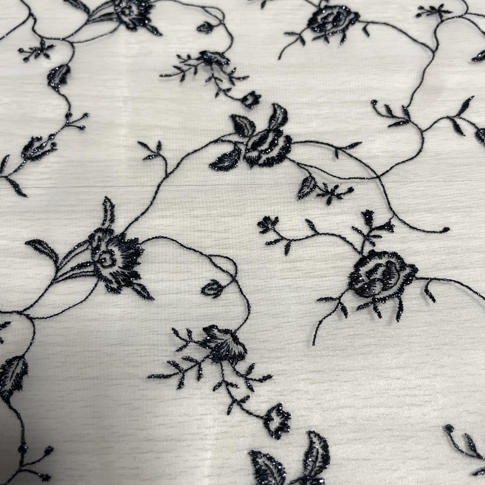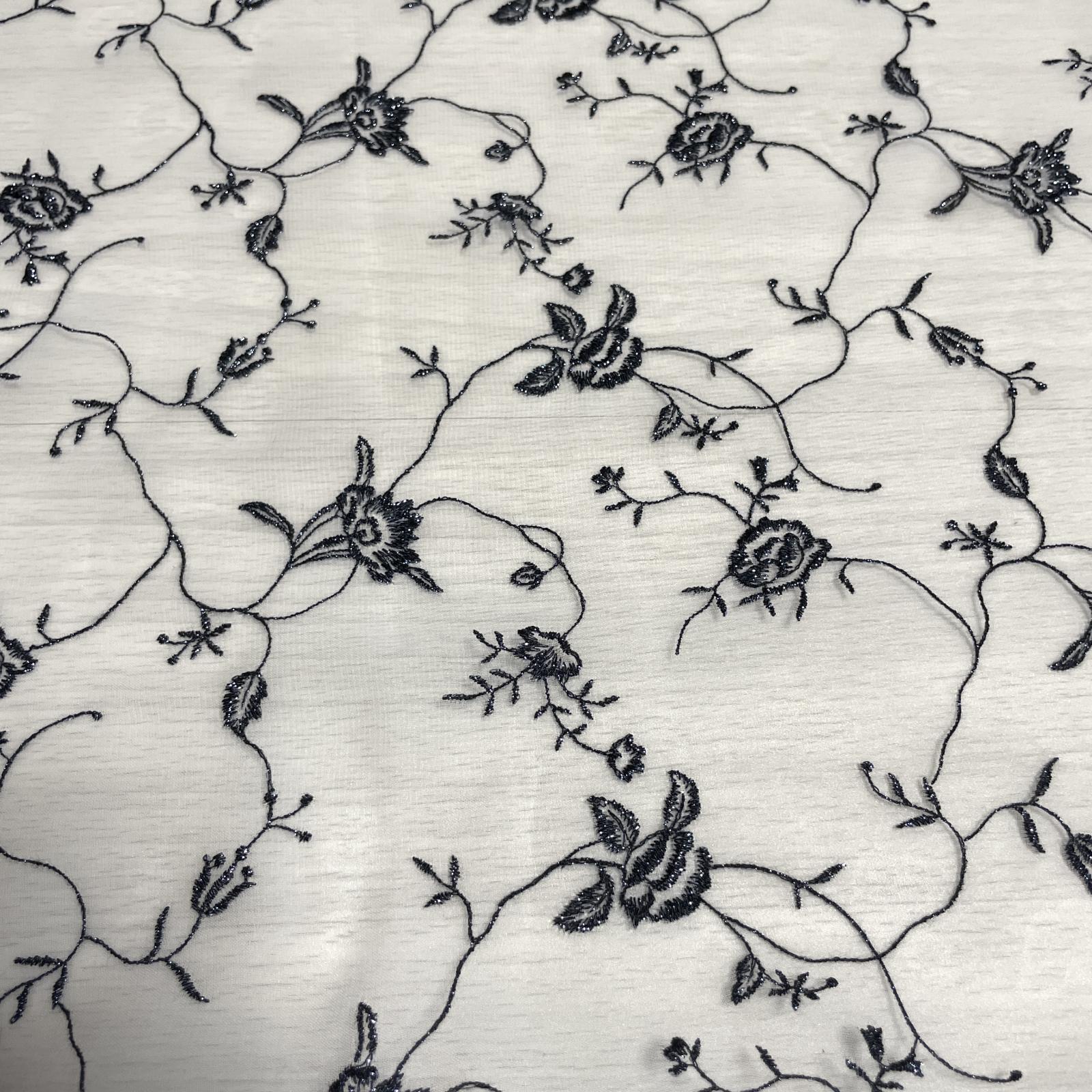 白のネットに黒ラメの刺繍がほどこされた美しいレースです