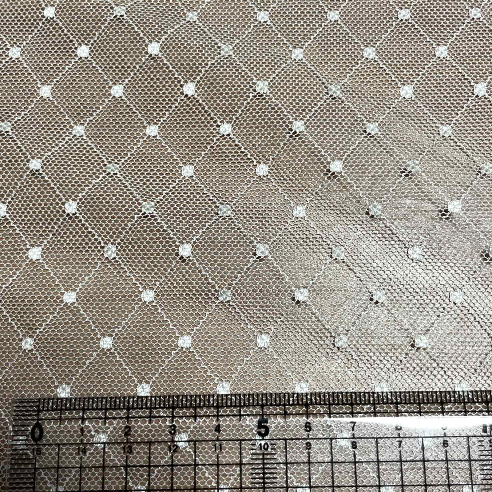 【高品質な日本製】約幅110cm!広幅チュールネット ドット柄刺繍チュールレース生地 オフホワイト 2m